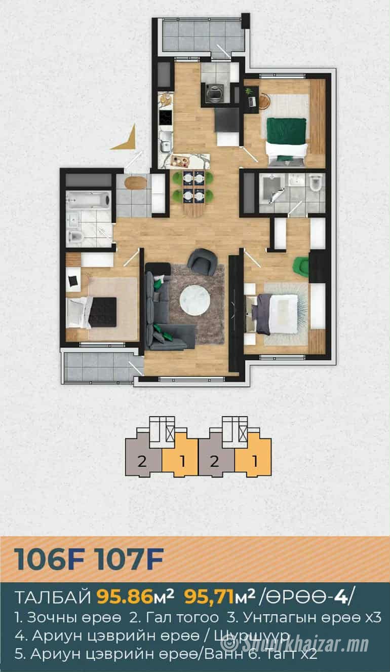 "Сансар гарден хотхонд 1-р давхрын 95.71 мкв 4 өрөө орон сууцыг зах зээлийн үнээс хямдаар худалдана"